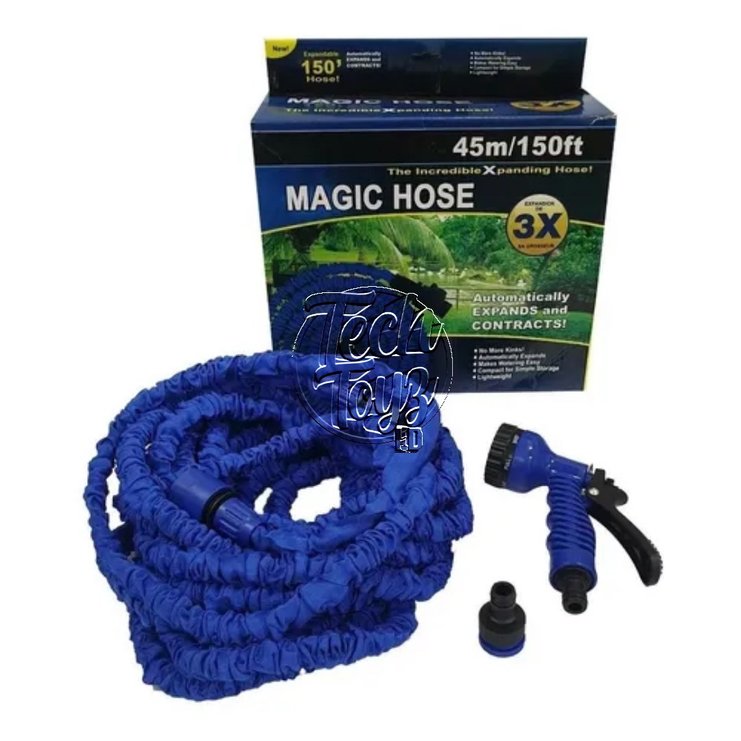La Retráctil Manguera Magic Hose Está Compuesta por 2 Mangueras, una Interior Expandible y una Manguera Exterior Plegable, Solo Requiere la Presión del Agua para Alcanzar su Máximo Tamaño. La Manguera Interior Está Compuesta de Látex lo que le Da Resistencia y Dureza para No Cuartearse Ni Agrietarse por el Uso, la Exterior está Elaborada Por Nylon de Alta Calidad con Hilos Expandibles, lo que Hace que Pueda Alcanzar 3 Veces su Tamaño Original. ¡Es Muy Ligera y Fácil de Transportar! Cuenta Con Una Pistola De Riego Con 7 Diferentes Funciones